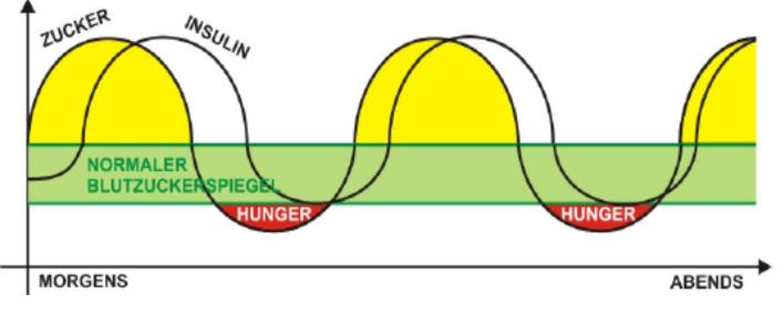 Das Resultat: ein zu niedriger Blutzuckerspiegel und das große Verlangen nach mehr Kohlenhydraten! Dieser Zyklus wiederholt sich 2-3mal pro Tag! Dieser Teufelskreis ist eine der Hauptursachen für Diabetes, Bluthochdruck und Übergewicht.